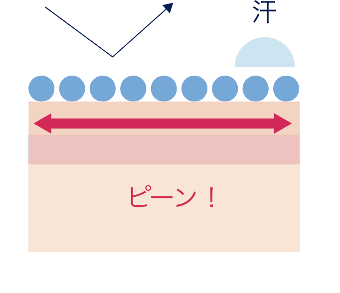 外的刺激を防ぎ、お肌をやさしく保護。お肌に触れることで炎症やトラブルの原因になる外的刺激物質はプラス(+)に帯電しており、肌表面も同じくプラス(+)に帯電させることで、近づくことを防ぎ、肌への付着や浸入をブロックします。